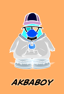 It started when he was taking a pill since he was ill. Akbaboy didn't know that there was a speck of the X-Virus on that certain pill he was taking. He went to the doctor because he felt all tingly and did weird gestures. He was diagnosed with the X-Virus and took pills for two months until one day his antibody was coming out. He started coughing EVERYWHERE. On the floor, on the wall, in the air, on his puffles, on his furniture, on other penguins, you name it. He then sneezed hardly on a random ice floe and then a black and green mucus started to turn into the shape of a puffle and then a fairy penguin and then an adelie penguin. Then clothes started to form. At that time there was a huge audience watching the scary moment. He then had an X on his back and was created. "I am finally alive. Now which one of you foolish penguins wants to be PWNed first? " was his first words. Everyone freaked out and ran away. "Looks like it's you my pathetic copy. ". Akbaboy got all upset. "You call me PATHETIC? Looks who's the pathetic one when I PWN you 'till you surrender.". They got in a huge flame war and then soon they got into a skirmish. It lasted three hours and by that time both needed to retreat. Akbaboy X then ran to join Darktan hoping he would accept. He did and now PWNs random penguins and is training to fight the good guys.