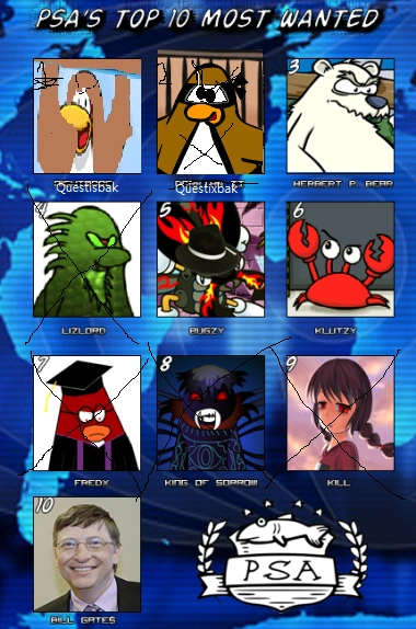 All of the Top Ten Most Wanted are listed here. Bugzy is ranked #5, after Lizlord and before Klutzy