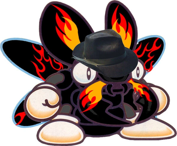Bugzy is very well-known in the USA, holding the titles of Godfather in the Underground PWN Mafia, and a Sergeant in the RV Clan. He is a wanted criminal in the PSA, ranking #9 in their datafiles, charged with destructive pwnage, robbing the Pizza Parlour on numerous occasions, smuggling Doom Weeds and other foreign artifacts into Antarctica, running the gangster crime sprees, and threatening for "protection money", so that Bugzy does not need to pwn his victim. His appearance is a black beetle, with red and yellow flames tatooed to his skin, and his wings are outlined with a red flame. He is always seen wearing either a Gangster Hat, or a Black Beanie.