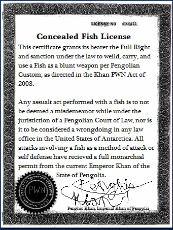 - Bugzy is legally allowed to weild a fish like a Khanz Penguin. He even has a fully registered license signed by Penghis Khan. In short, Bugzy can PWN you with a fish. Please run away now.