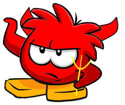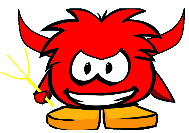 This article is SCARY. Please make immediate corrections before someone besides the user who placed this template becomes all trembly. This template may have been given out for being a member of a very evil group, delerving evil messages, having a gilded pitchfork, being related to the Demon Penguins, etc. If any puffle is evil, they must unconsciously choose to do so. They cannot consciously choose, because that would a major shame and disgrace to the puffle race. Should they feel guilt (like they should), it must be their decision to do so. |
