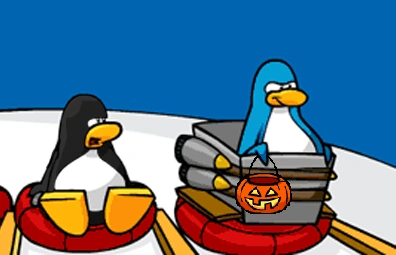 Ghost Penguin was a normal penguin, but every Halloween he would dress up as a ghost. People always teased him for having the most normal costume. He would always retort back, "I'm a ghost!" They teased him so much he went insane, and really thought he was a ghost. He was kicked out by his landlord because he couldn't pay the rent, and he always talked in L33t. He lived outside a fruitcake store for three years, then took up residence in the dojo. He often shouts "W0000000! 1 4m 4 9h0$7! B00!" in the middle of Card Jitsu matches. Rumours say that there is a Ghost Room, which only Ghost Penguin can access, wich is probably why nobody can find him.
